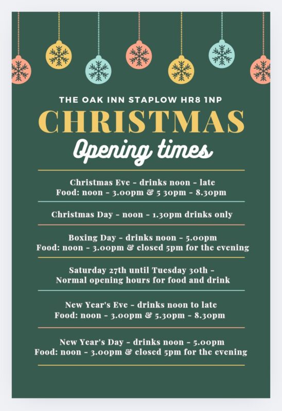 star rating  A lovely place to visit - We decided to go to The Oak Inn at Staplow for an early drink and dinner last night. Once more, we were welcomed, settled in, received great service and of... read more