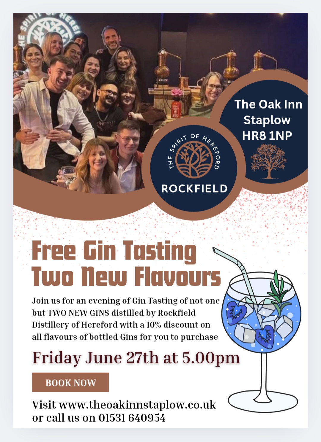 To reserve your place please visit our WEBSITE www.theoakinnstaplow.co.uk and click BOOK A TABLE and in message type GIN TASTING or just CALL US on 01531 640954 ♥️