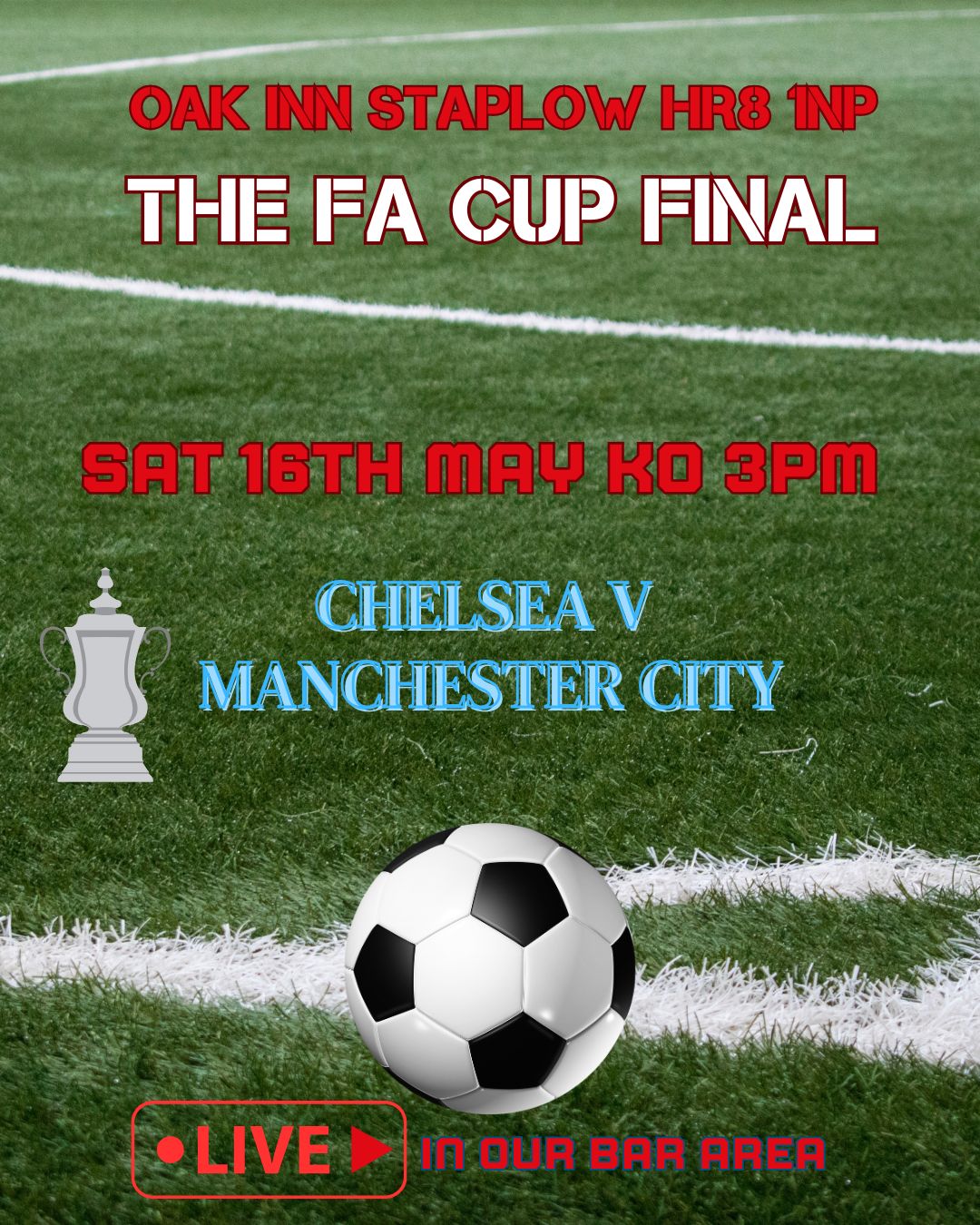 Join us for The FA CUP FINAL FOOTBALL in our LIVE Bar Area